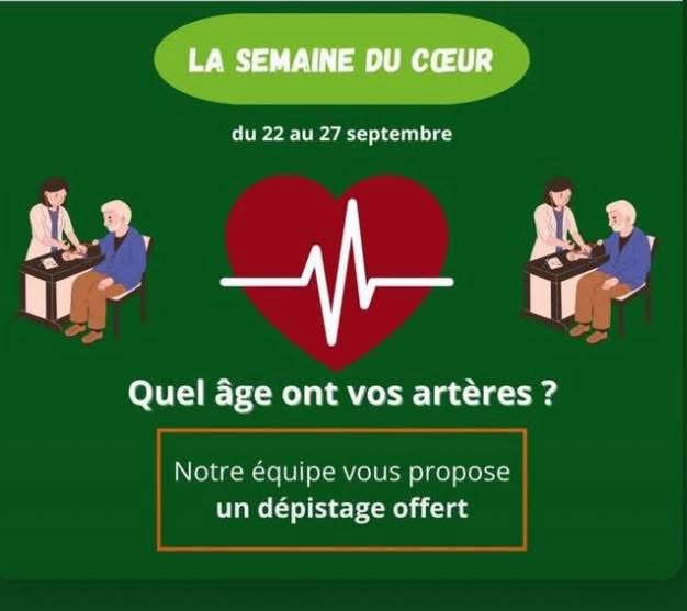 Du 22 septembre au 27 septembre , votre pharmacie se mobilise pour la prévention des maladies cardiovasculaires, venez faire votre bilan cardio❤️