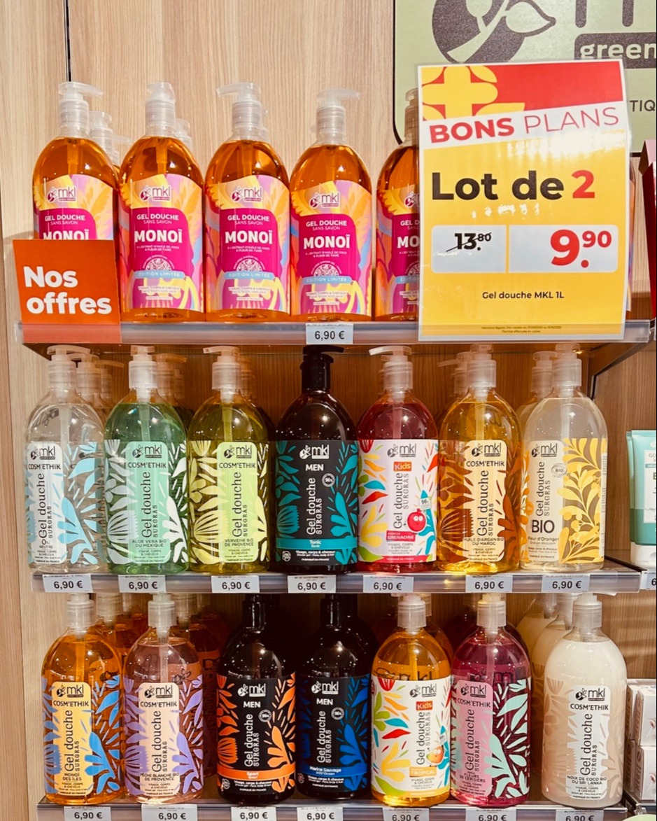 ⚠️Dès cette semaine et jusqu’à fin octobre, profitez de notre offre sur les gels douche MKL Green nature🌿 :